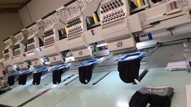 Your artwork is digitized into a stitch‑ready file, ensuring every detail is captured accurately. We then run your design on our embroidery machines using high‑quality threads and stabilizers for crisp, consistent results. The final product is durable, refined, and ready to wear.